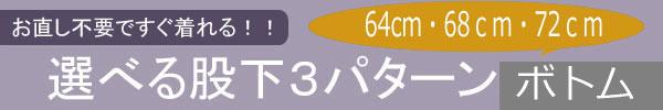 - パンツの股下丈が3パターン(64cm・68cm・72cm)から選べて裾直しが不要です。