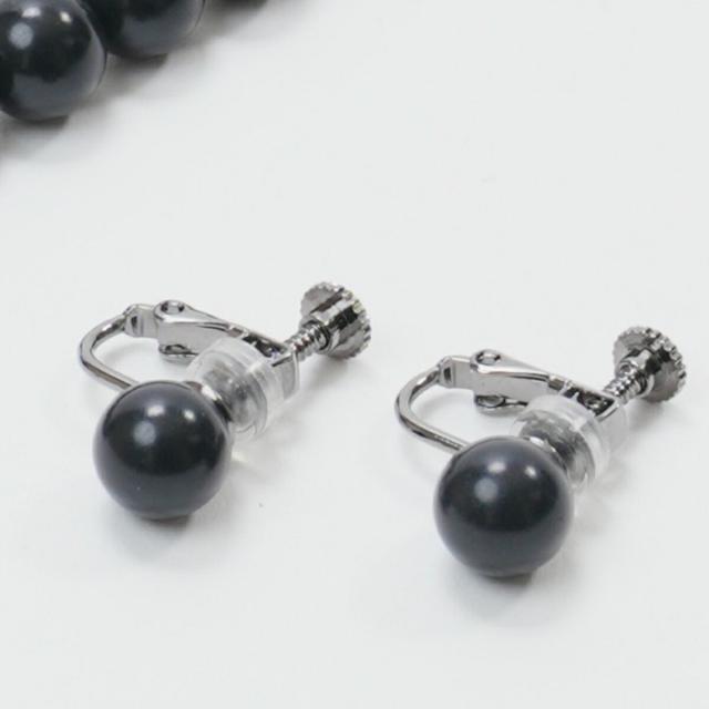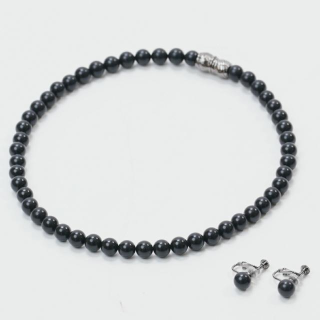天然ジェット8mm珠イヤリング付ネックレスセット 留め具は強力マグネット使用 |