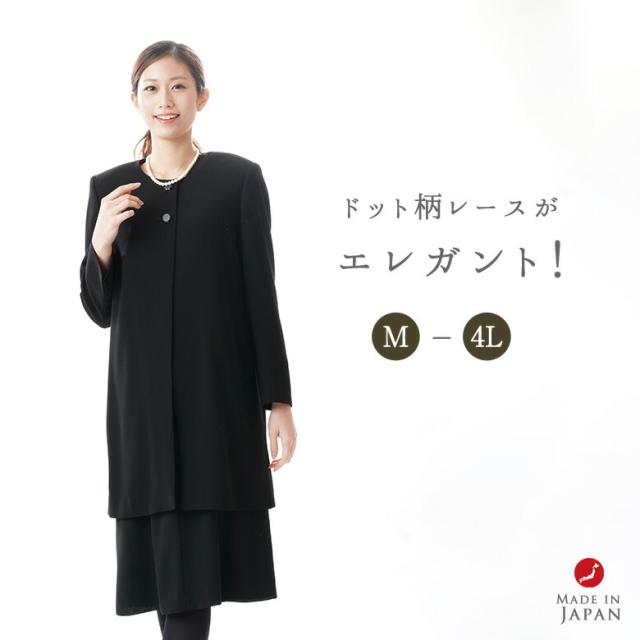 【日本製/即日発送】ブラックフォーマル アンサンブル 【スリーシーズン】 レディース 婦人 喪服 礼服 :RL883102 【ロングジャケット+ワンピース】大きいサイズ【サイズ M・LLサイズのみ】冠婚葬祭 卒業式 入学式 卒園式 入園式 お宮参り 七五三 葬儀 葬式 法事 通夜 法要