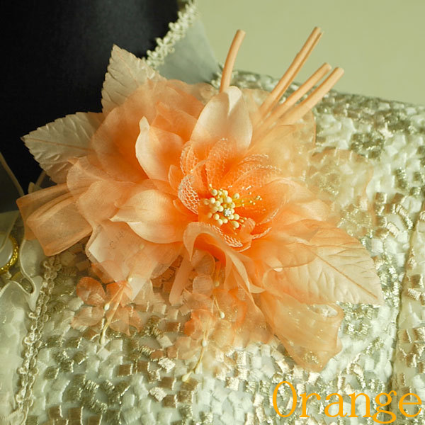 *慶事用*フラワーコサージュ(オレンジ):C140-OR ダリア風の胸飾り(ケース入り)【結婚式・披露宴・卒業式・入学式・成人式】