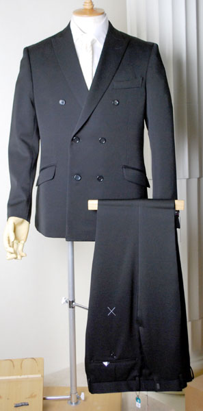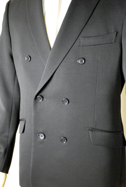 ジャケット:ダブル6B×2・ピークドラペル・サイドベンツ・お台場仕立て・毛芯仕立て・メガネ携帯電話ポケット・祝儀袋ポケット・