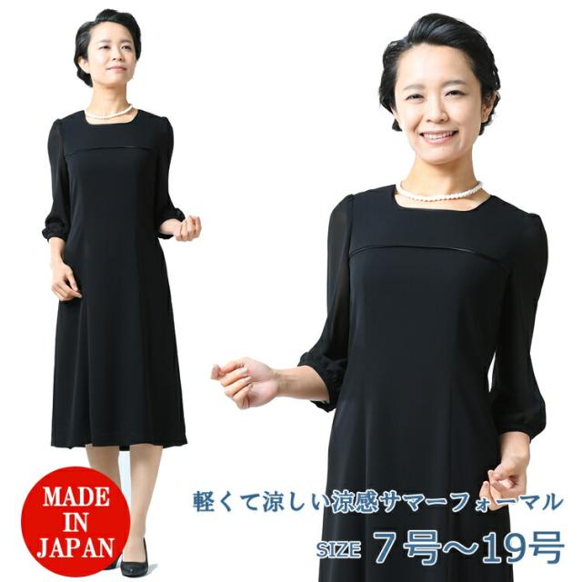 夏用 ブラックフォーマル ワンピース レディース 婦人 礼服 喪服:RL109548【日本製】【9号〜17号】黒 大きいサイズ 冠婚葬祭 葬式 葬儀 通夜 法事 礼装 サマーフォーマル