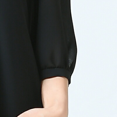 袖丈は肘下程度の長さになっています。 透け感のある素材で涼しげな印象です。 |
