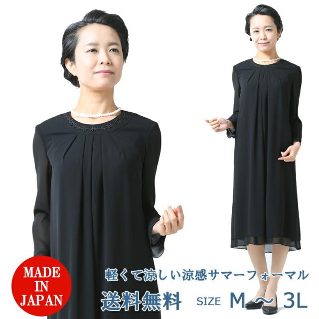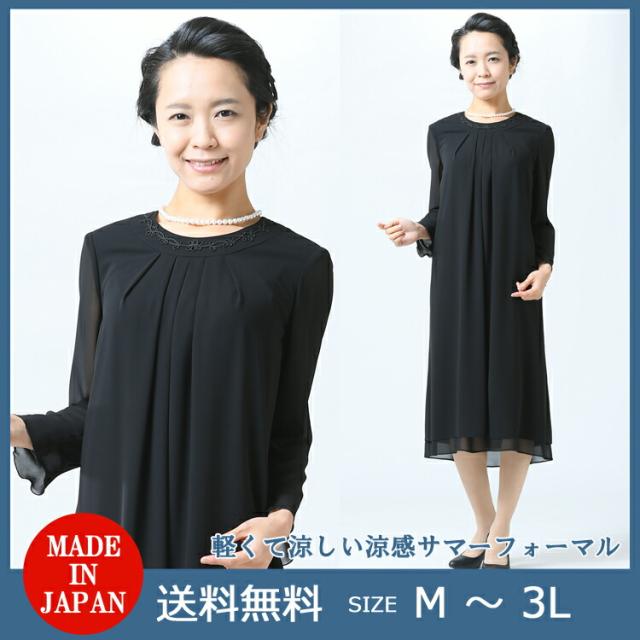 【ロイヤル】夏用 ブラックフォーマル ワンピース レディース 婦人 礼服 喪服:RL109554【日本製】【M〜3L】黒 大きいサイズ 冠婚葬祭 葬式 葬儀 通夜 法事 礼装 サマーフォーマル