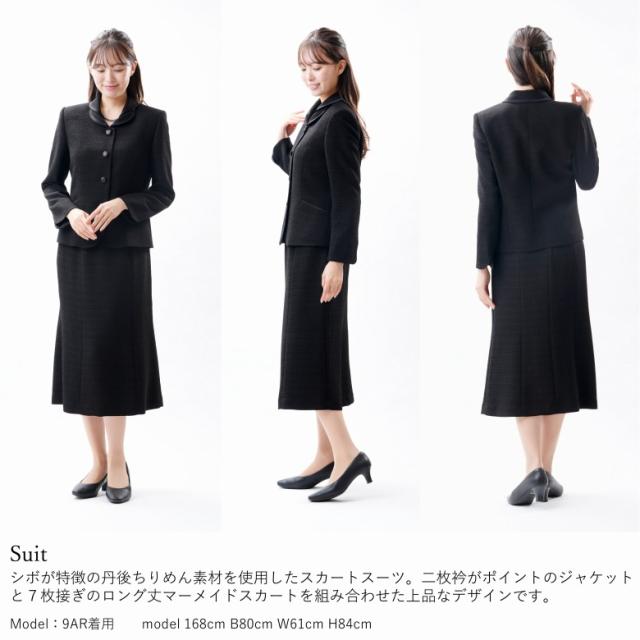 日本製 ブラックフォーマル 丹後ちりめんスーツ MR2010 2枚衿ジャケット プラス マーメイドスカート 国内縫製 弔事 慶事 婦人 礼服 喪服 日本製 黒 冠婚葬祭 葬儀 葬式 通夜 法事 法要 礼装 レディース