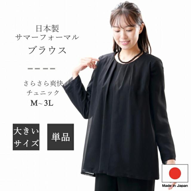 ブラック フォーマル ブラウス【単品】 MU18000 レディース 婦人 礼服 喪服 【日本製】【M〜3L】冠婚葬祭 卒業式 入学式 七五三 お宮参り 葬儀 葬式 通夜 法事 結婚式 礼装 オフィス 大きいサイズ トップス チュニック