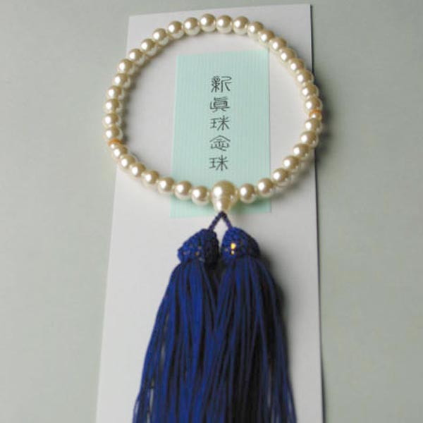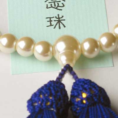 | ・珠の部分がオフホワイトの貝パールになっています。 ・房の部分は濃い青色です。 ・弔事には欠かせませんので、フォーマルバッグと一緒にしまっておきましょう。 |