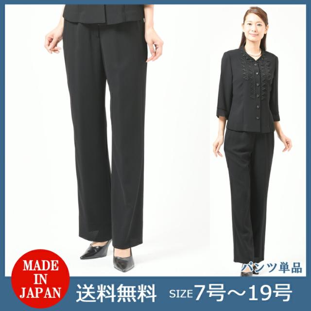 夏用 ブラックフォーマル パンツ レディース 婦人 礼服 喪服 :EU-52=700268 (ブラウス別売り)【日本製】【7号〜19号】黒 大きいサイズ 冠婚葬祭 葬儀 葬式 通夜 法事 法要 礼装 サマーフォーマル