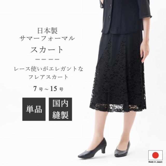 サマー ブラックフォーマル レーススカート 単品 日本製 国内縫製 礼服 喪服 レディース ふんわり フレアスカート ロング丈 動きやすい ウエストゴム キュプラ 静電気軽減