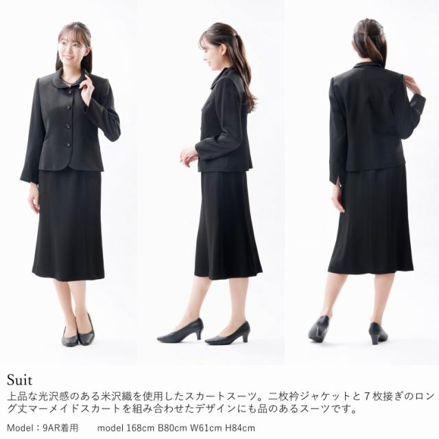 日本製 米沢織 ブラックフォーマル スカートスーツ :GR2008 or RL3786 2枚衿ジャケット+マーメイドスカート 国内縫製 弔事 慶事 婦人 礼服 喪服 日本製 黒 冠婚葬祭 葬儀 葬式 通夜 法事 法要 礼装 レディース
