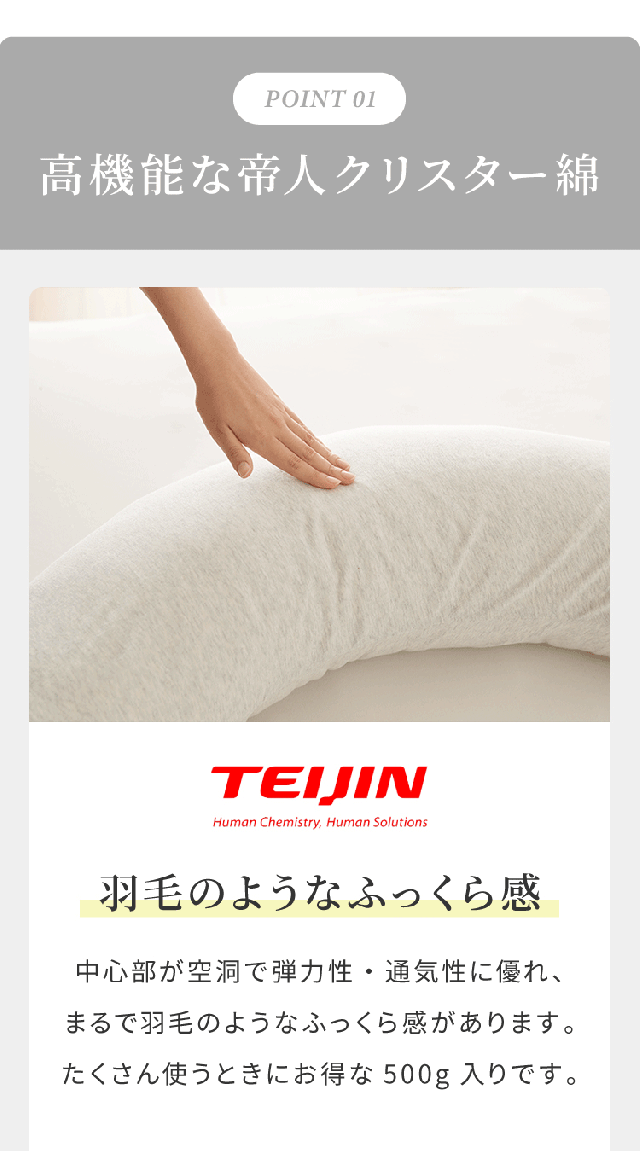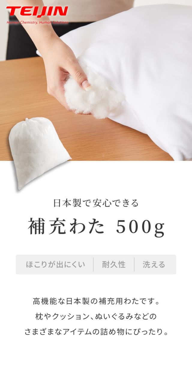 補充綿 500g 帝人 クリスター綿 日本製 TEIJIN テイジン 国産 補充用 大容量 補充 詰め物 詰めもの 枕 抱き枕 まくら だきまくら ぬいぐるみ 布団 ふとん 掛け布団 手芸綿 綿 わた リピート【送料