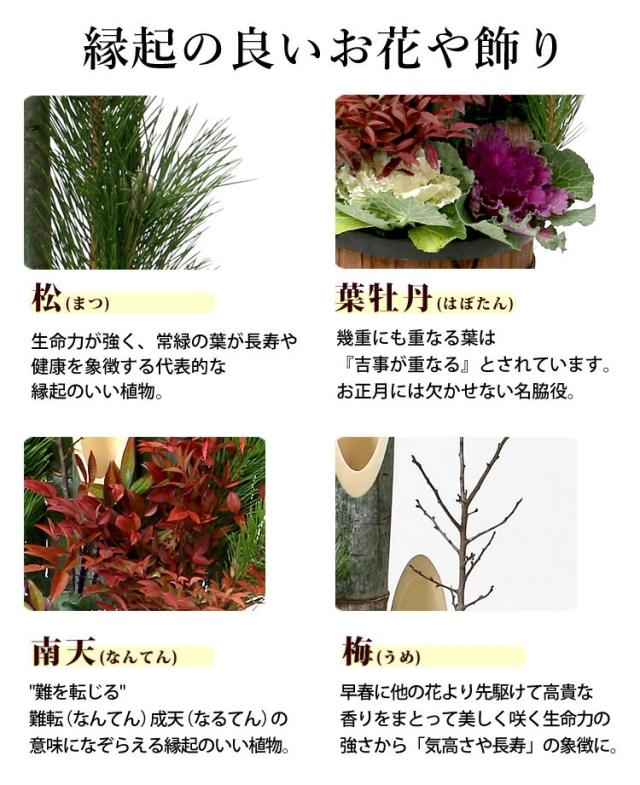 天然青竹3本組/枝若松(切枝)/南天/葉牡丹/梅(切枝)/
