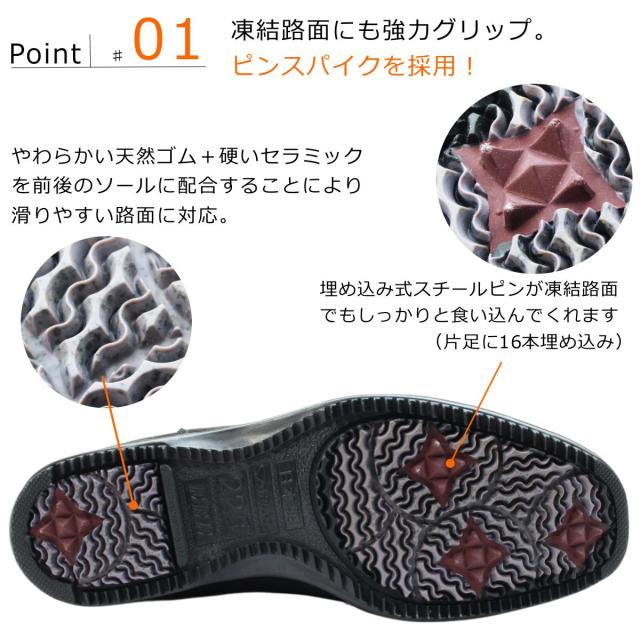 第一ゴム レディース ピンスパイク レザー ブーツ 6745 ラ・シェブリー 日本製 本革 ロングブーツ 北海道 ブラック ヌバック