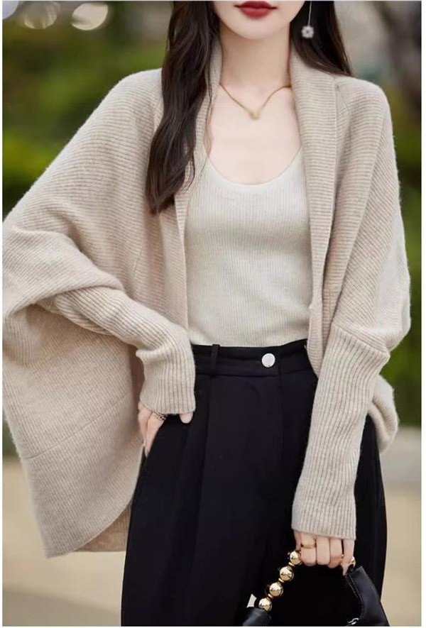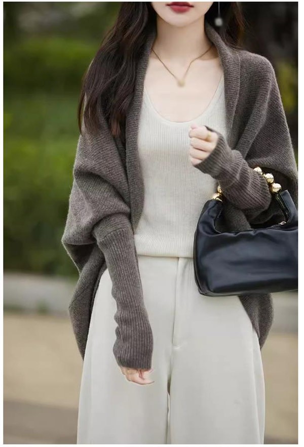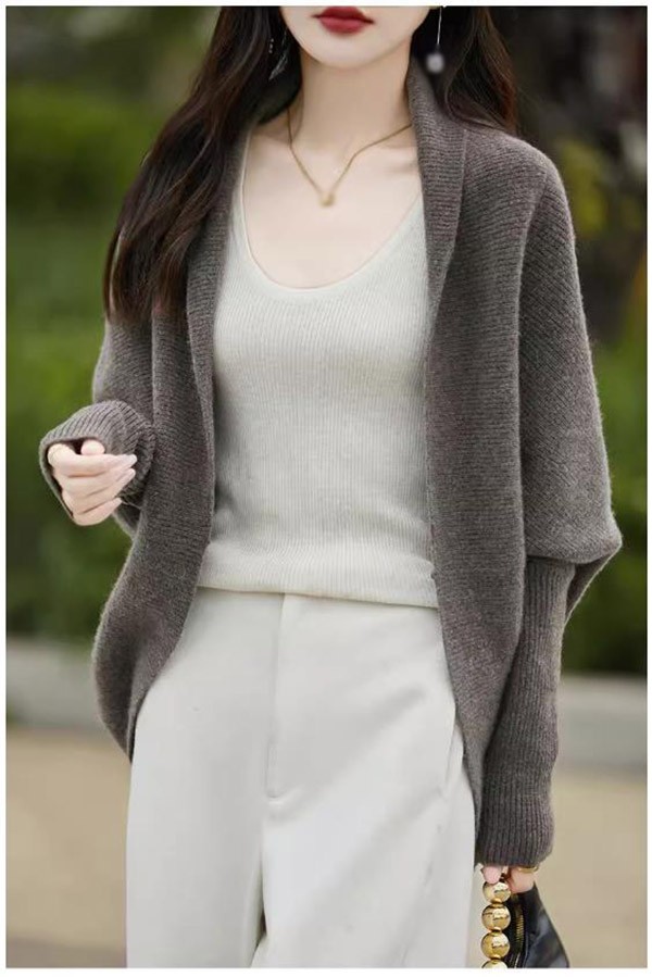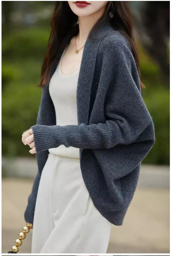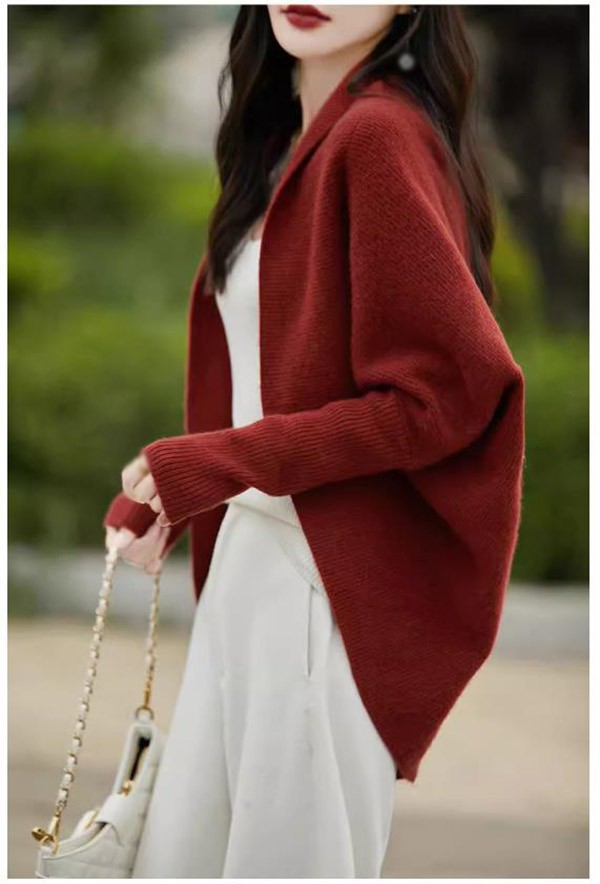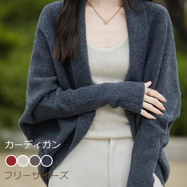 カーディガン 無地 バットスリーブ ショールトップ レディース 秋 ゆったり ニットカーディガン ジャケット おしゃれ 20代 30代 40代 ベージュ コーヒー グレー レッド