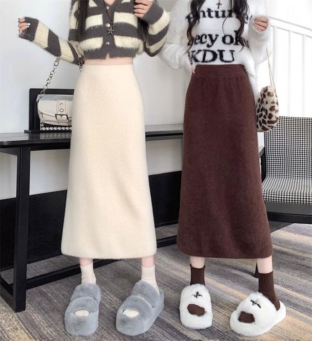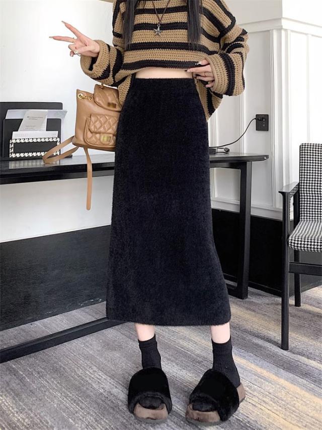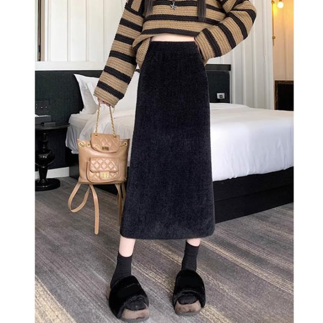 スカート ロング 秋冬 スリット入りスカート フリーサイズ ニットスカート タイト ボトムス オフィス 通勤 ナロースカート ストレッチ ロング丈 リブニット 大きいサイズ