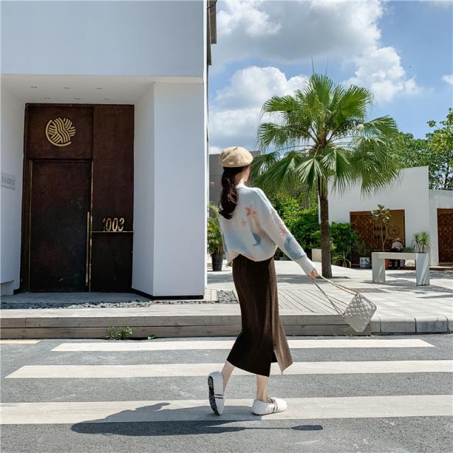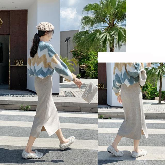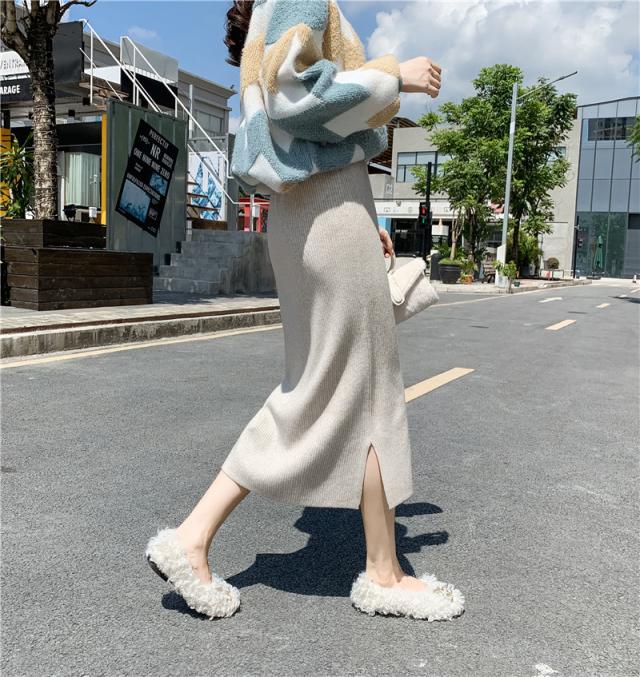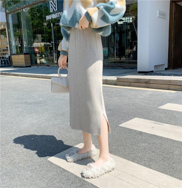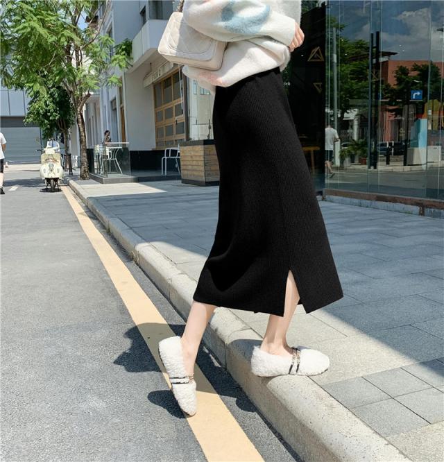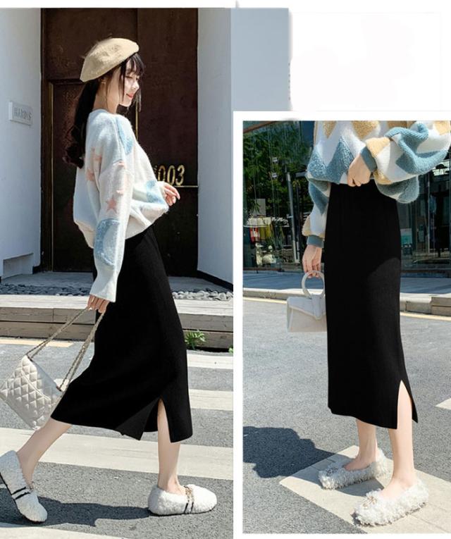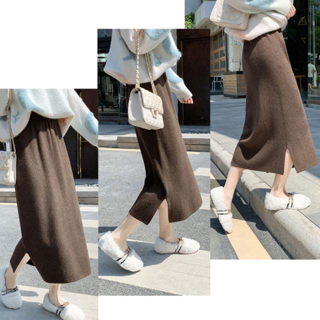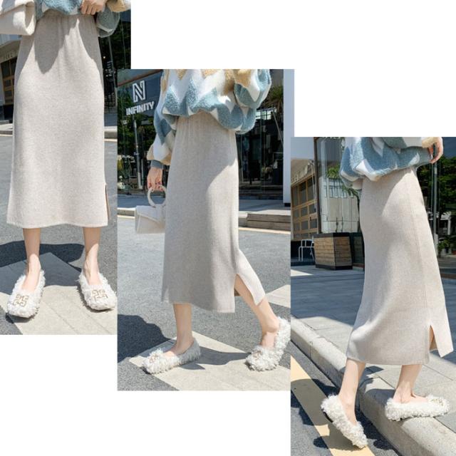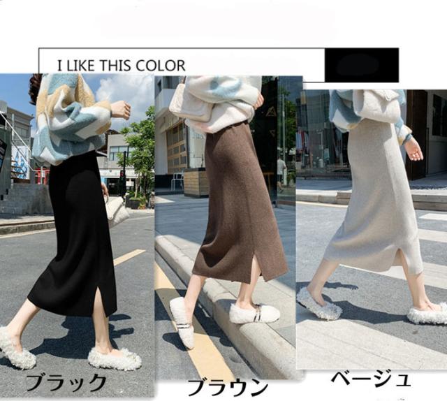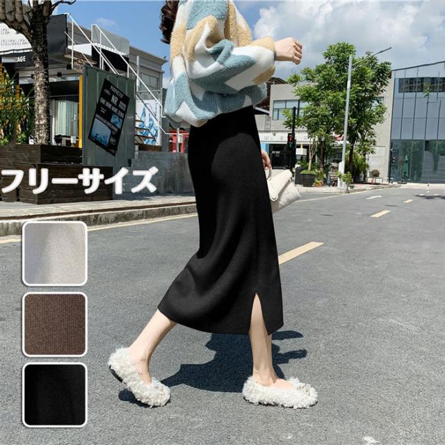 リブニットスカート ロング フリーサイズ ニット 秋冬 スリット入りスカート ニットスカート タイトロングスカート ボトムス オフィス 通勤 ナロースカート ストレッチ ロング丈 リブニット 大きいサイズ