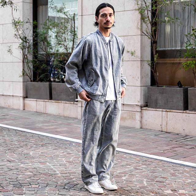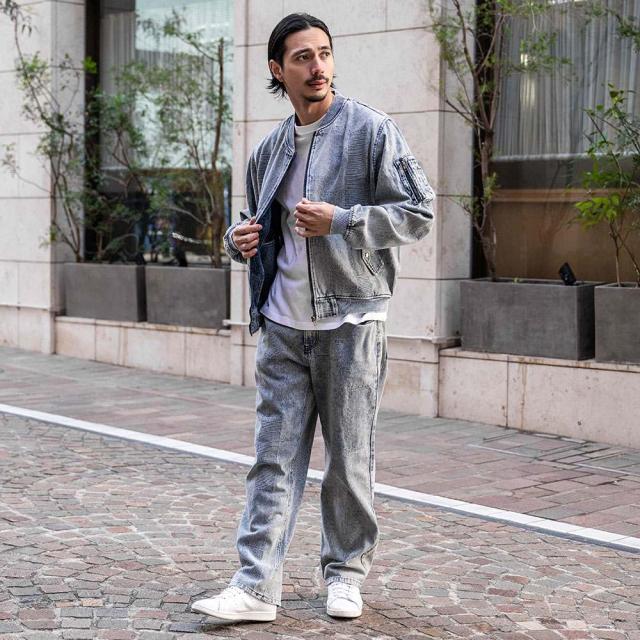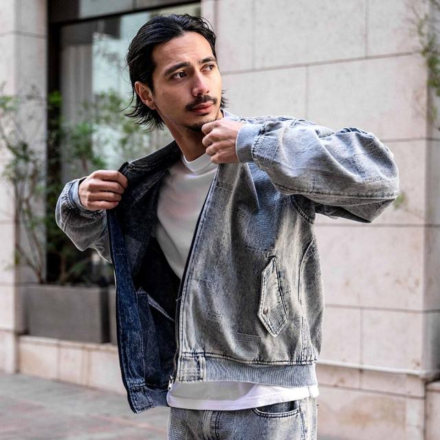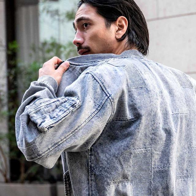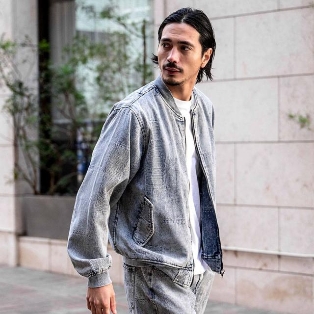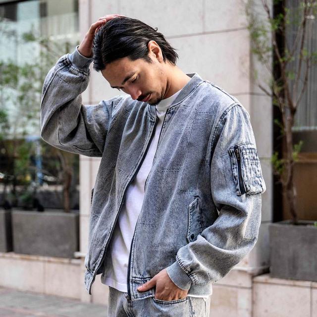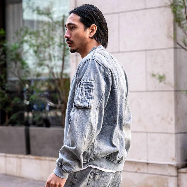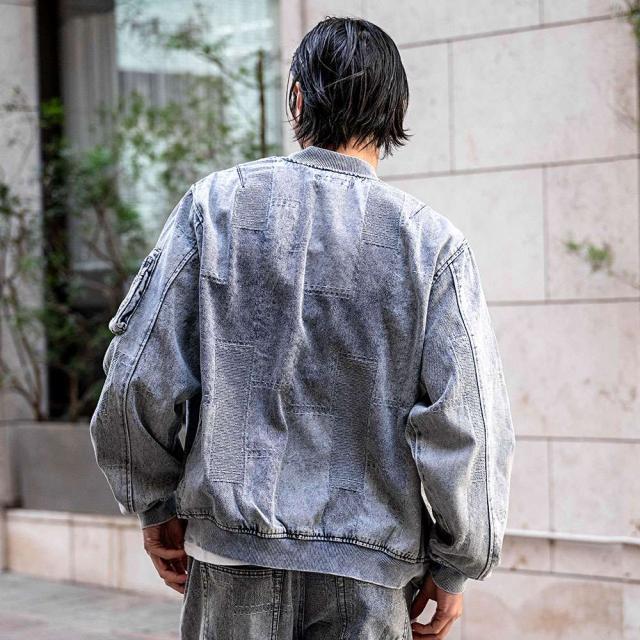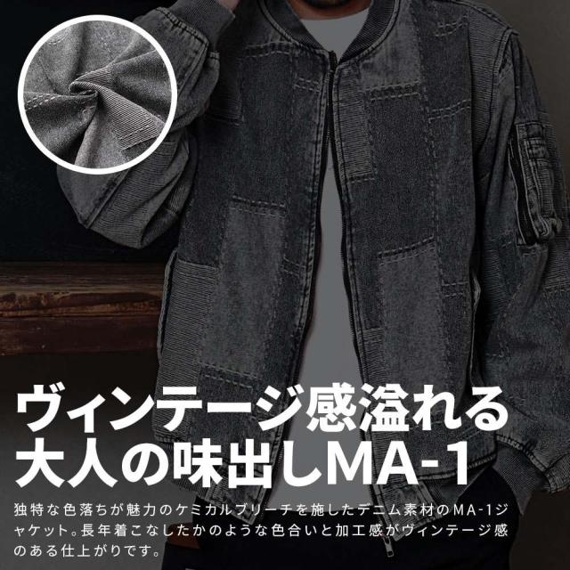 独特な色落ちが魅力のケミカルブリーチを施したデニム素材のMA-1ジャケット。