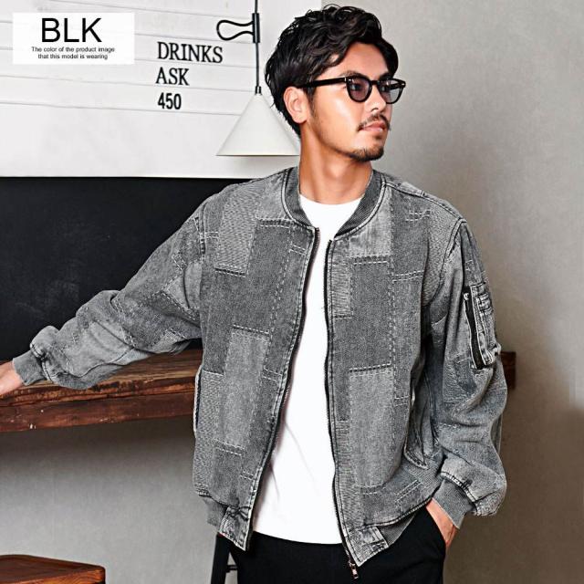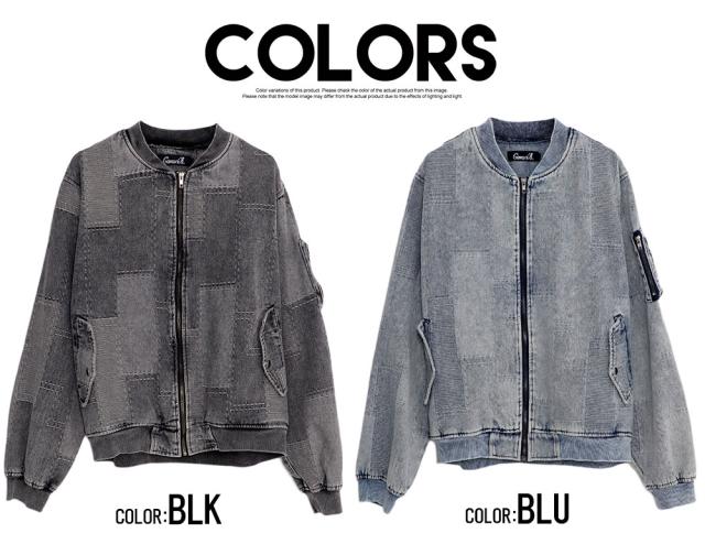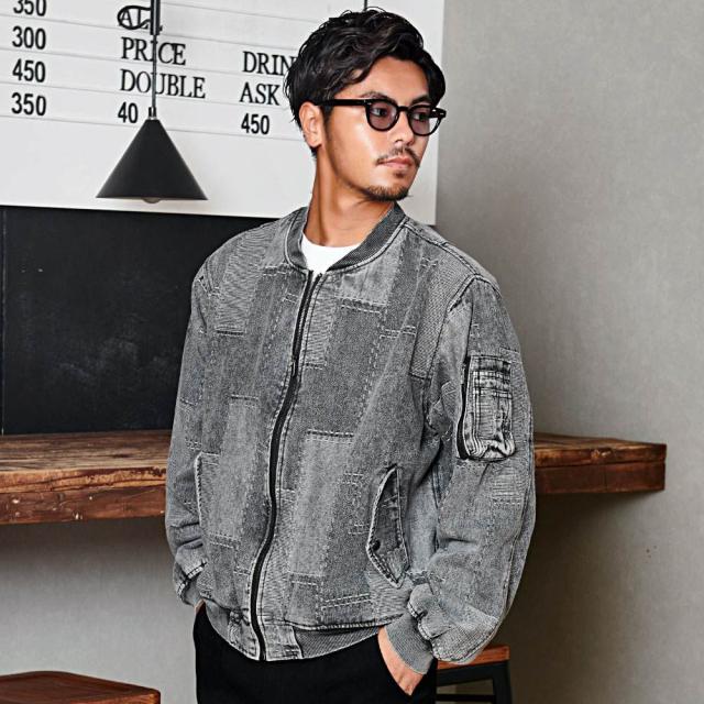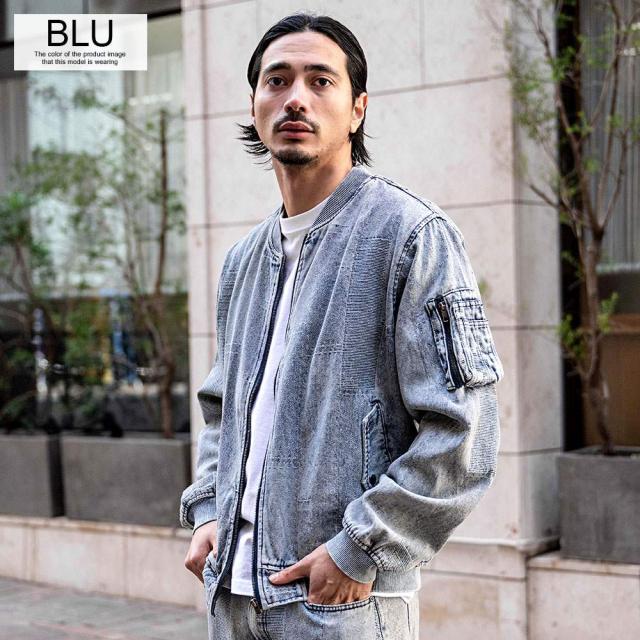 MA-1 メンズ おしゃれ MA-1ジャケット MA1 デニムジャケット ブルゾン アウター 古着風 ヴィンテージ ビンテージ ジャガード オーバーサイズ ブラック ブルー 黒 M L CavariA ブランド 20代 30代 40代 ユニセックス 男性 男 服 秋 冬 秋冬 秋服 ファッション [CATN24-05]
