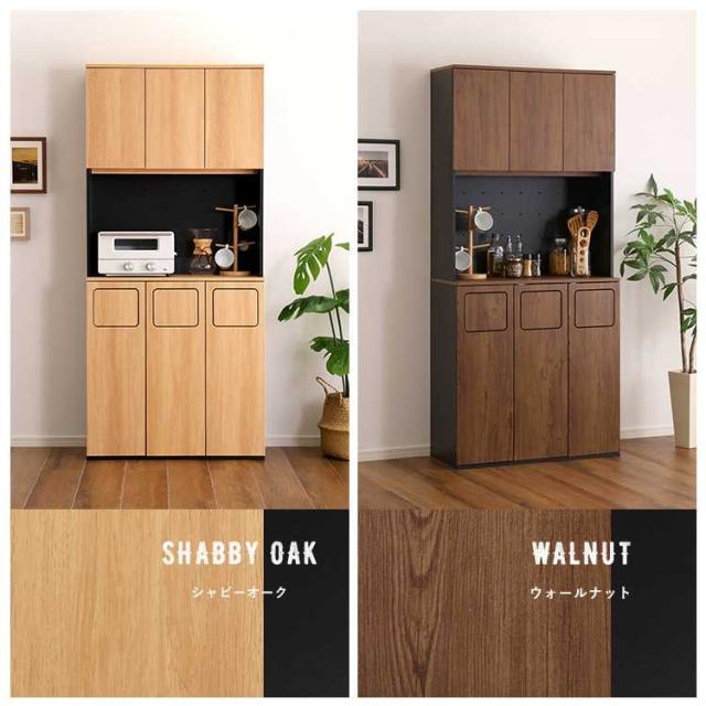 キッチンボード 幅80 ヴィンテージ ごみ箱一体型食器棚 ごみ箱3つタイプ