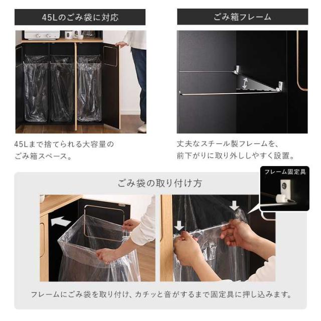 キッチン周りの収納や家電、ゴミ箱のスペースをこれ一台で有効活用できます。