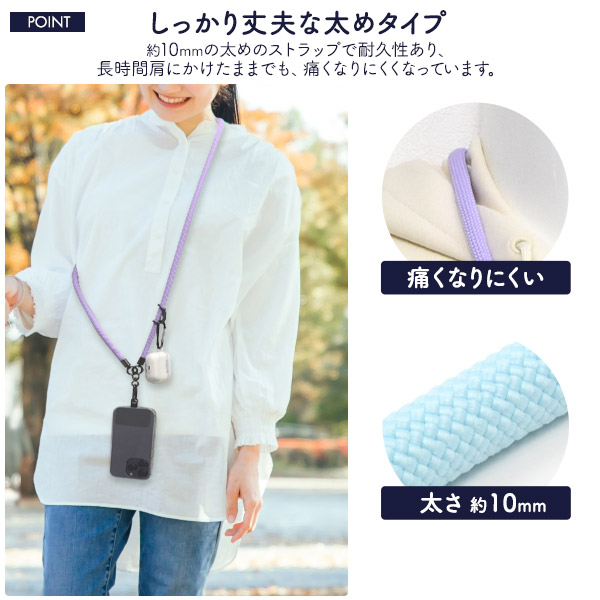 スマホショルダー 太さ10mm ストラップホルダー 太め スマホケースを肩掛け 太い ネックストラップ 斜め掛け おしゃれ かわいい 落下防止 斜めがけ 首掛け 紐 ストラップ おしゃれ ストラップホール 全機種対応 iPhone AQUOS Galaxy Xperia 流行り 紐のみ 送料無料