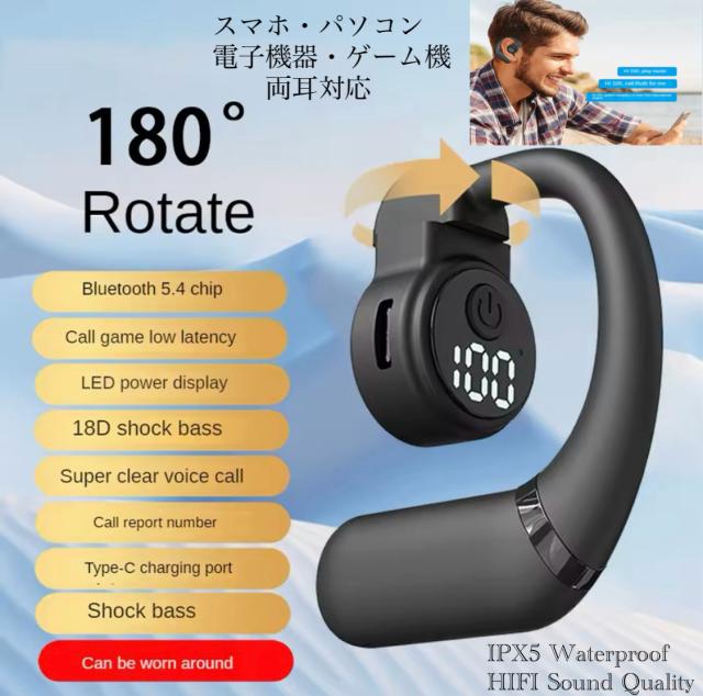 Bluetooth5.4 Bluetooth ワイヤレス Bluetoothイヤホン ワイヤレスイヤホン 耳掛け型 イヤフォン イヤホンマイク 片耳 USB 充電 高音質 超軽量 テレワーク スマホ イヤホン カナル型 イヤホンスマホ ブルートゥース 高音質 ヘッドホン ジム マイク付き ハンズフリー通話 スポーツ 音楽