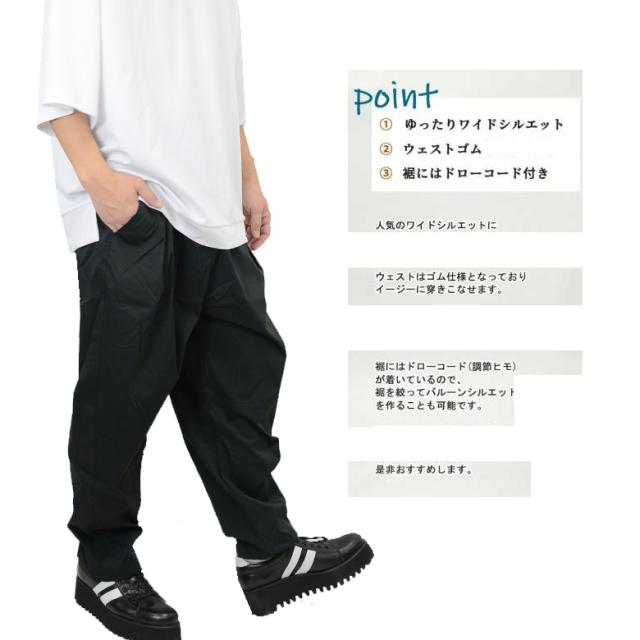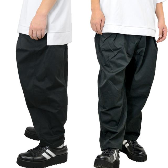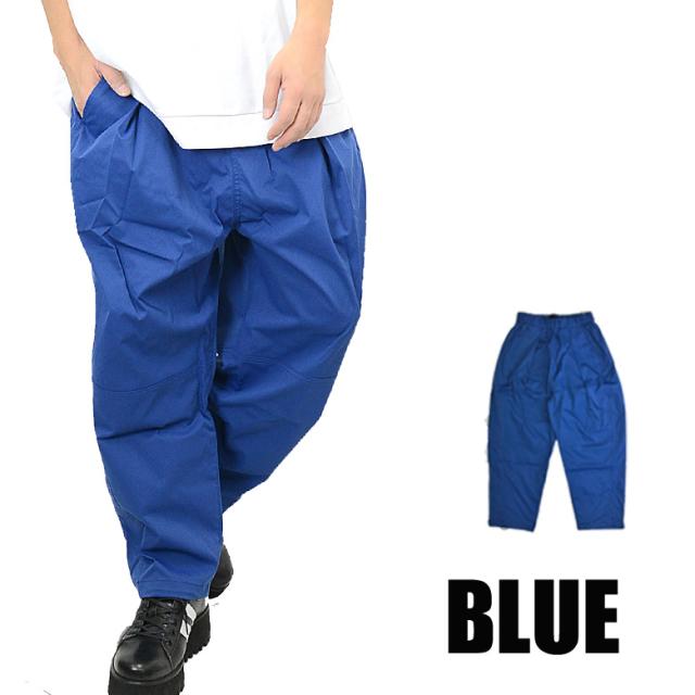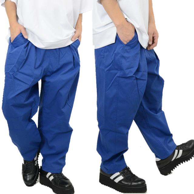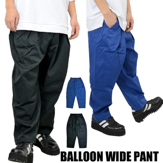 【閉店セール】ツイル素材 バルーン イージー ワイドパンツ 55814 ワンタックで魅せる程よいドレープ感!外出にはもちろん、部屋着にも使える万能パンツ!メンズ ロングパンツ ワイド ゆったり 無地 ウェストゴム イージーパンツ カジュアル M L パンツ ブルー ブラック