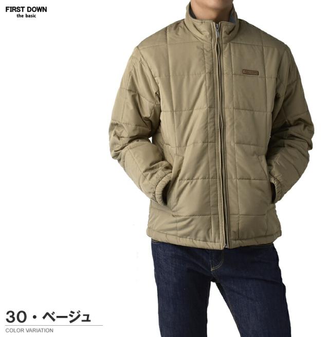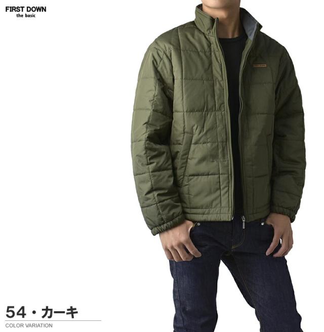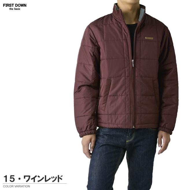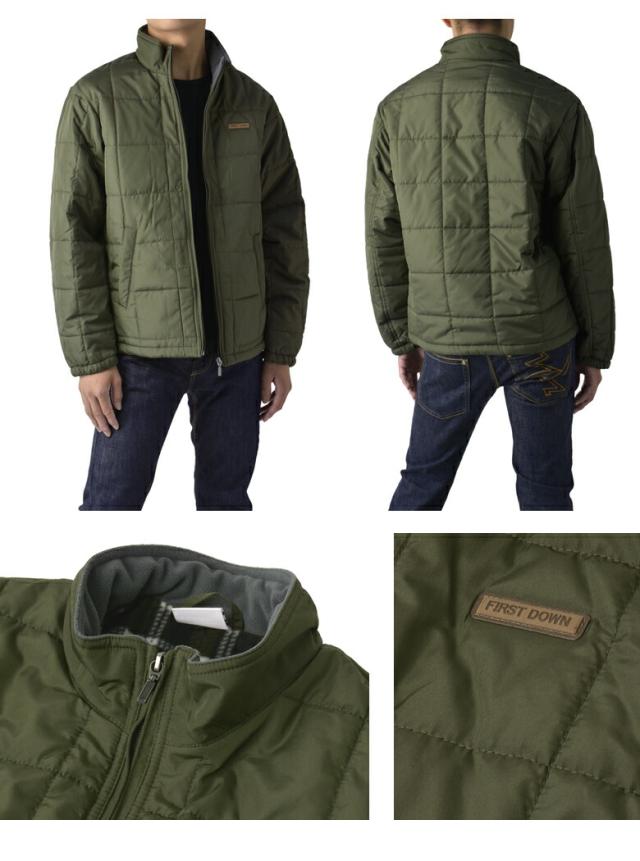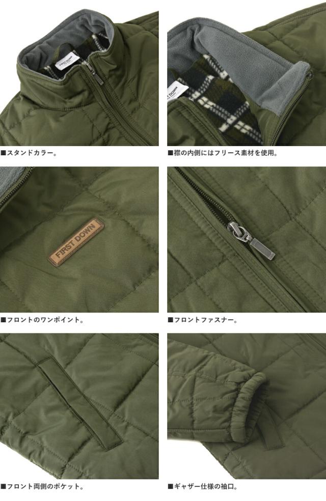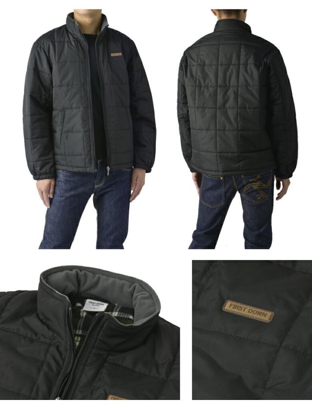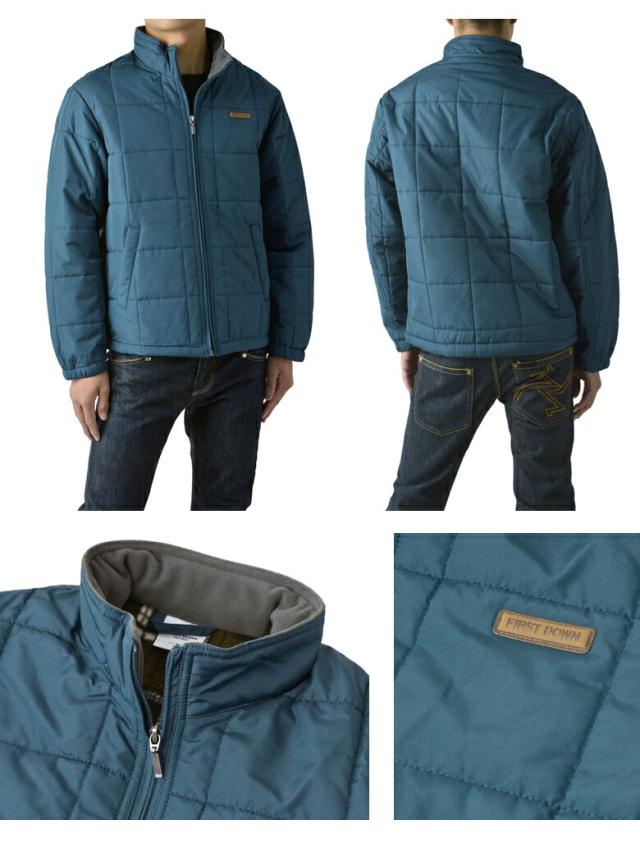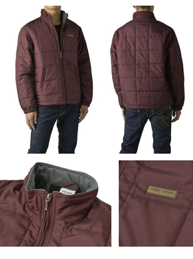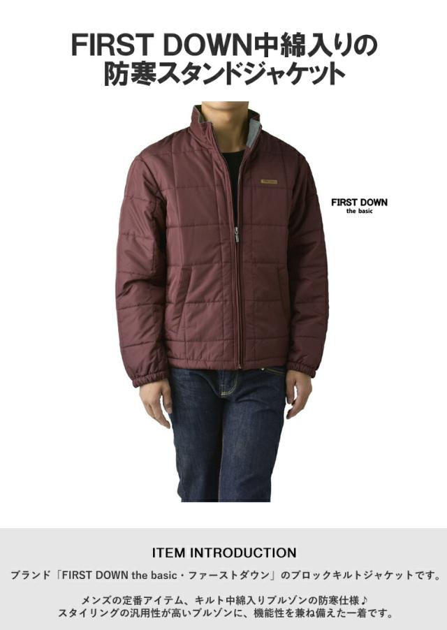 FIRSTDOWN the basic ファーストダウン メンズ ソフトシェル 中綿ジャケット スタンドジャケット 裏フリース 薄中綿 撥水 防寒 保温 ブロックキルト キルティング【B7F】