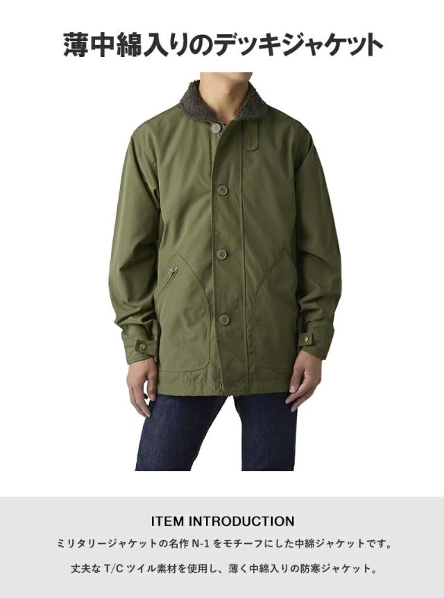 メンズ デッキジャケット N-1 中綿 ミリタリー ブルゾン 秋冬 ボア襟 裏地付き【C4K】