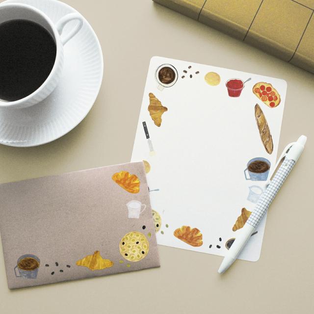 おいしそうなスイーツやパンがちりばめられたレターセット