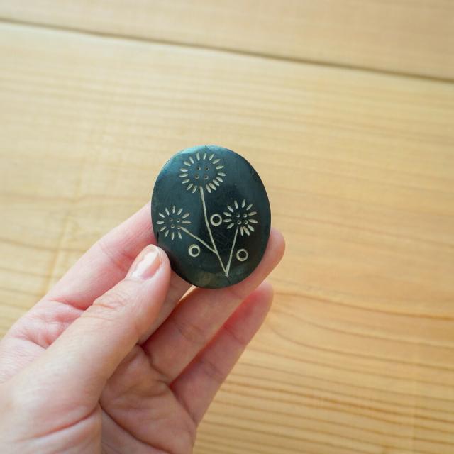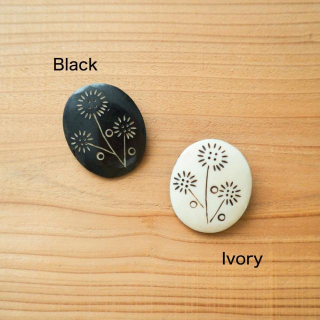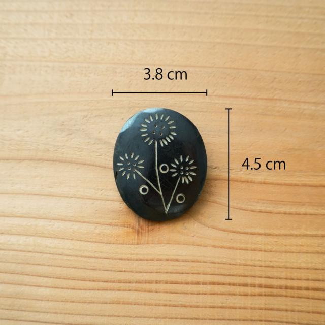 水牛の骨を1つ1つ手彫りした、あたたかみのあるブローチです。