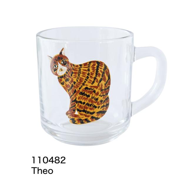 松尾ミユキさんの描くネコ達がじっと見つめてくるグラス製マグ