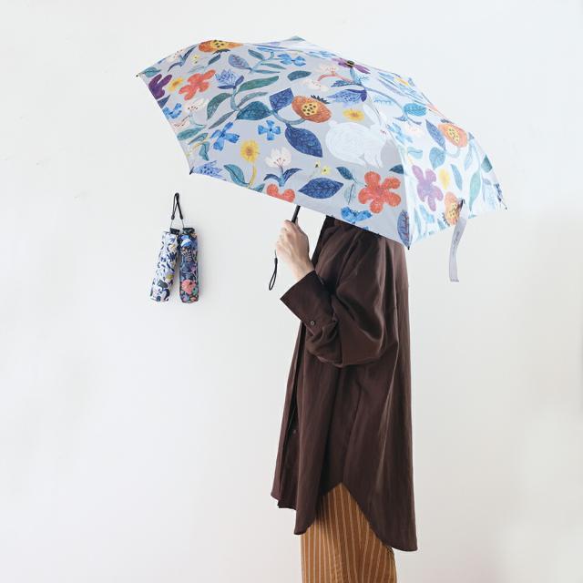 松尾ミユキ 折りたたみ傘|Folding umbrella 雑貨 傘 プレゼント おしゃれ かわいい 日用品 動物 アニマル 植物 ボタニカル ウサギ 鳥 リス 総柄 晴雨兼用 雨 梅雨 紫外線 UV 撥水 折りたたみ 軽量