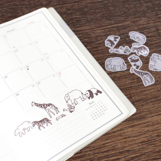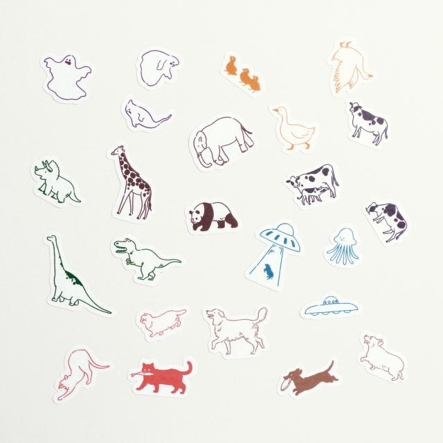 どこかへ向かう動物たちのフレークシール。