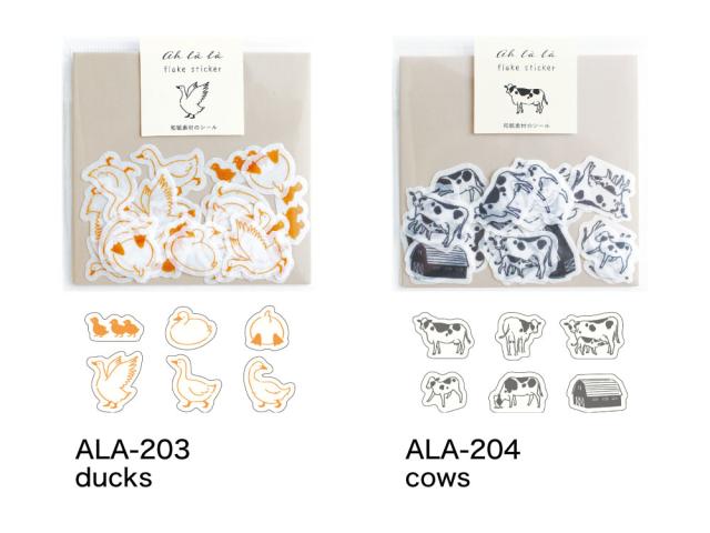 AH LA LA アララ フレークシール|おしゃれ かわいい 動物 大人 恐竜 ダイナソー アヒル 牛 UFO おばけ 犬 猫 アニマル ステッカー シール デコレーション ノート 手帳|MATOKA マトカ【drc】