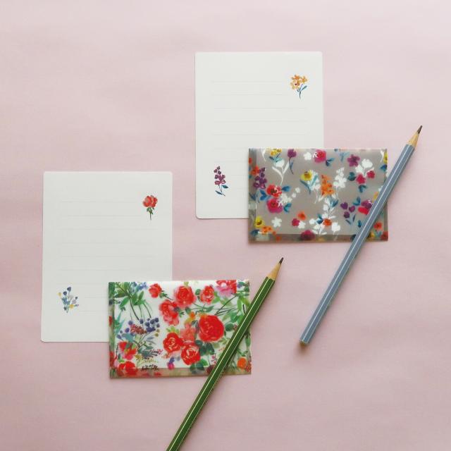 花柄の透け感がきれいなミニレターセット。
