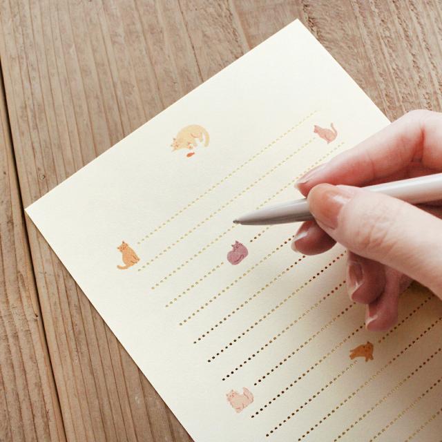 罫線のところどころにあるイラストがアクセントになっていて、手紙を書く人も、受け取る人もまるでおしゃべりをしているような楽しさを感じられるレターセットです。