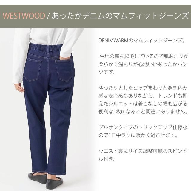 【ぬくもる冬デザイン】あったかデニムのマムフィットジーンズ ウエストウッドアウトフィッターズ トリックジップ DENIWARM ストレッチジーンズ デニムパンツ Westwood Outfitters ( 8133038 ) ウエストゴム リラックスパンツ レディース ボトムス おしゃれ アーベン