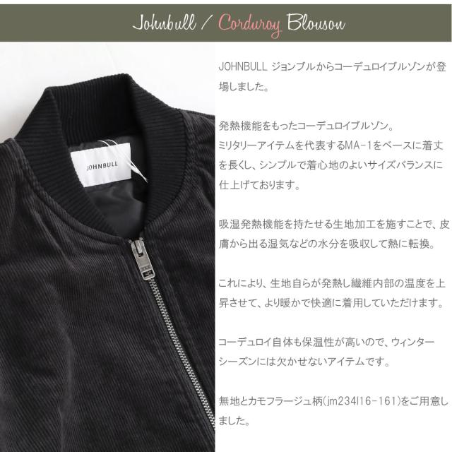 ジャケット ジョンブル Johnbull MA-1 ヒート コーデュロイ 中綿 ブルゾン ( jm234l16 ) フライトジャケット ミリタリー 吸湿発熱 HOTJOIN メンズ レディース ユニセックス 重ね着 リブ カットソー おしゃれ アーベン 普段使い 実用的 羽織り きれいめ