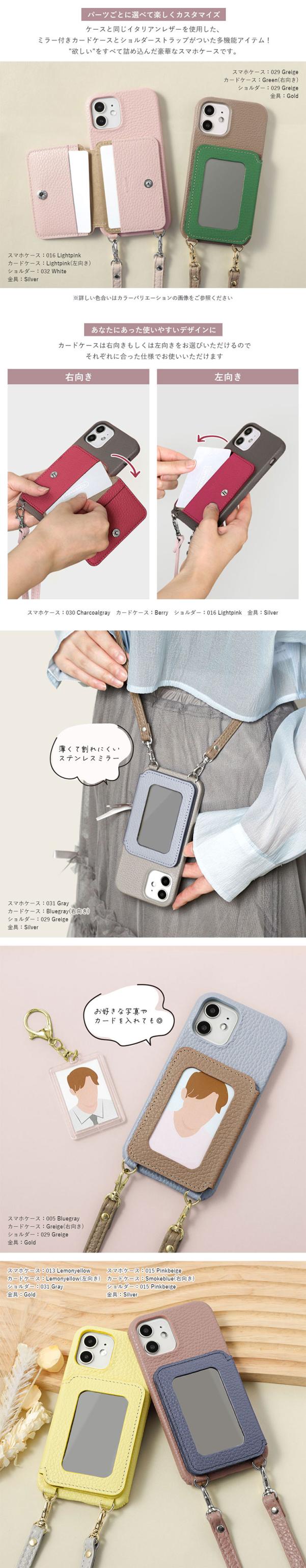 おしゃれさと便利さをプラスする本革製カードポケット&ステンレスミラー付き