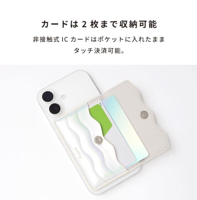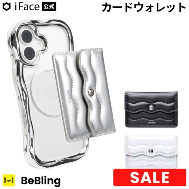 【公式】iFace BeBling Wave MagSafe対応 カードケース MagSynq【 アイフェイス カードウォレット カード2枚収納OK ボタン式 メタリック シルバー magsafe リングシール付属 マグネット 磁石 カード入れ シンプル 可愛い ブランド Hamee ハミィ 】