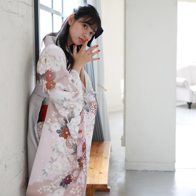 ※モデル着用の巾着・重ね衿・草履の色、デザインは