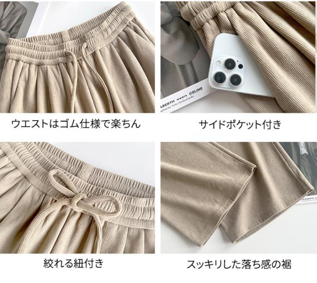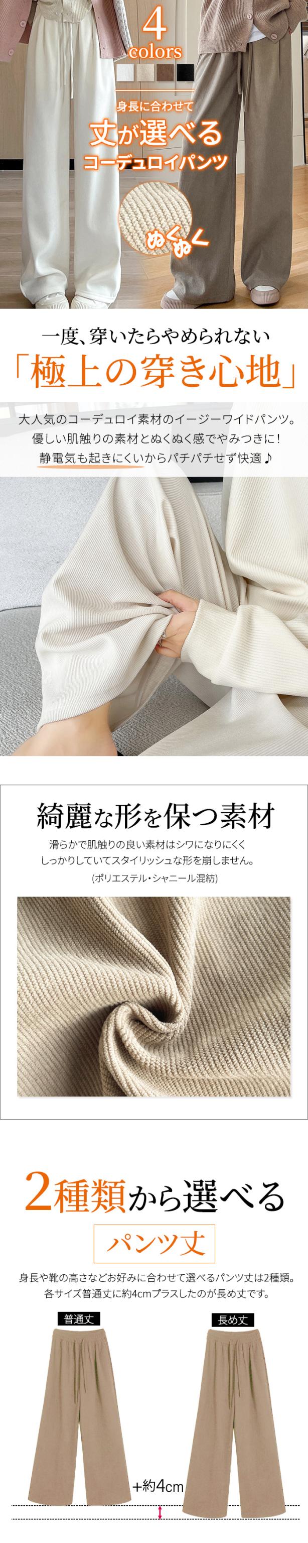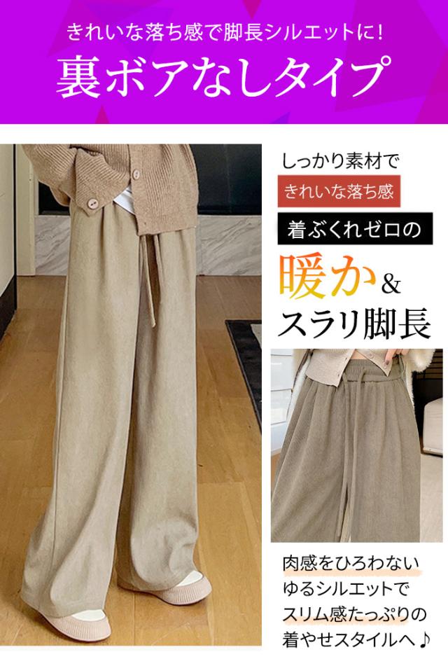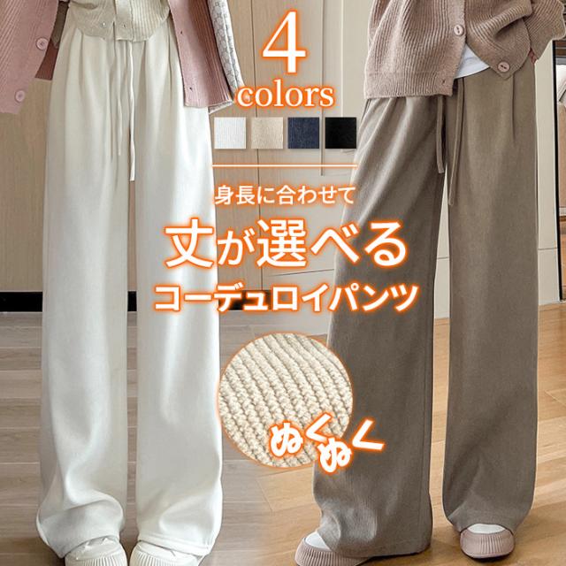 パンツ ワイドパンツ 暖かい イージーパンツ レディース 丈が選べる パンツ コーデュロイ ウエストゴム 冬 ルームウェア ポケット付き ロング 低身長 高身長 ゆったり 大きいサイズ 保暖