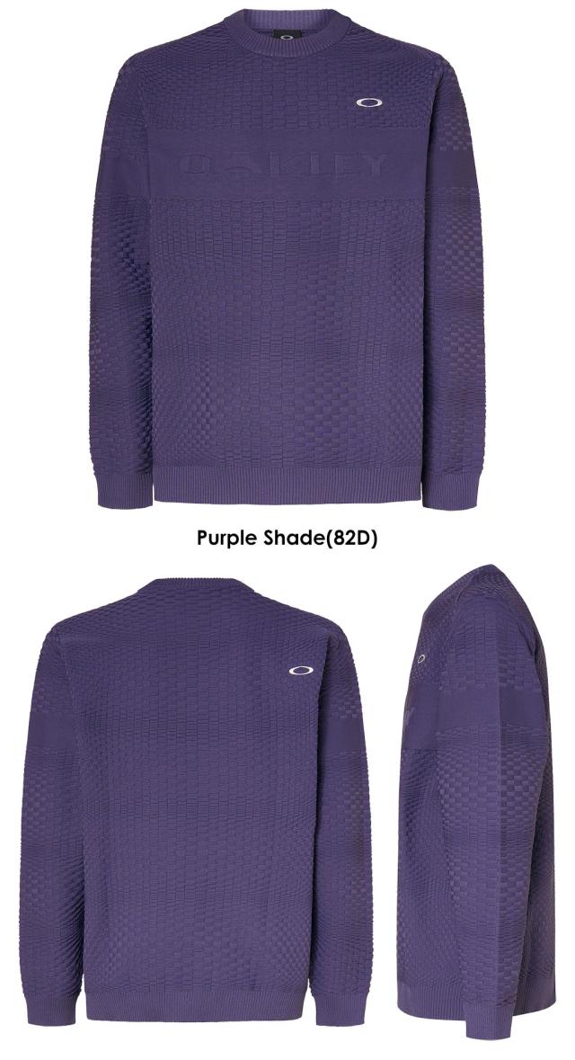 優れたストレッチ性と高い吸汗速乾性のポリエステル糸を採用したクルーネックセーター。立体感のある編地を採用し、凹凸感でベタつきを軽減。胸部分と袖にはフラットな編地にすることでライン調のデザインを表現。胸部分には編地で大きく表現したOAKLEYロゴのジャガードが浮き出る価値あるデザイン。シンプルで着回しの利く、ゴルフシーンで活躍するセーター。品番:FOA406967