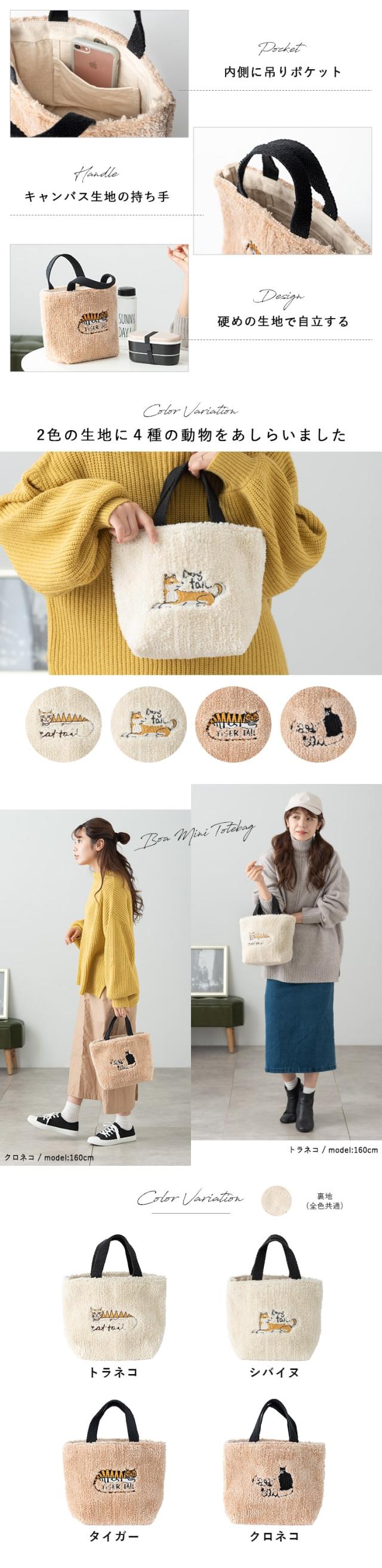 トートバッグ レディース 小さめ ボア 刺繍 動物 アニマル ミニトートバッグ 軽量 通勤 通学 犬 散歩 かわいい おしゃれ 大人 自立 ランチバッグ ペットボトル ビジネス マチあり a5 秋 冬 ネコ 猫 犬 トラ プレゼント ギフト