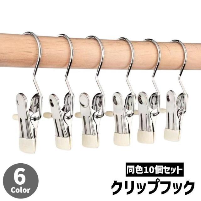 クリップフック 同色10個セット フック付き 滑り止め 落下防止 ランドリーフック クリップハンガー 靴下クリップ 吊り下げ 洗