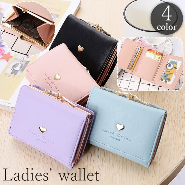 財布 ウォレット 三つ折り がま口 レディース キッズ ジュニア 小学生 中学生 高校生 女性 ハート カード入れ 小銭入れ お