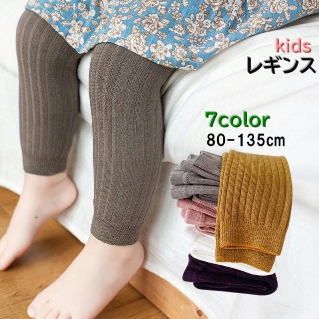 レギンス キッズ ベビー 子供用 赤ちゃん 男の子 女の子 男児 女児 9分丈 リブニット スパッツ シンプル 無地 防寒 カジ