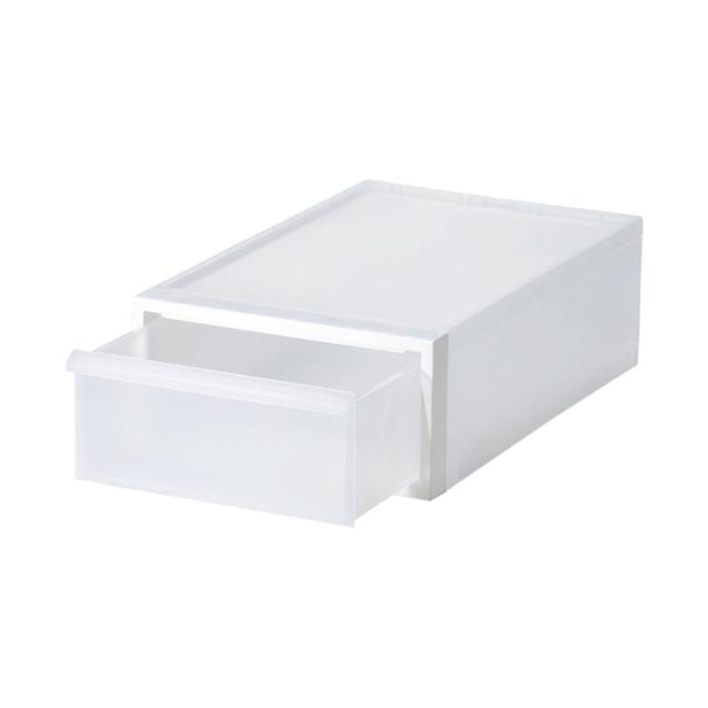 【おしゃれ見せ収納で暮らしを豊かに】ライフスタイルに合わせてアレンジ!「like−it クローゼットシステム 引出し S」。【スタッキングしたり使い方自在】使う場所、収納するモノ、使いやすさを考えたシリーズ。目的に合った収納システムを構築。【クローゼットや押し入れにぴったり】奥行約50cmの程よいサイズ。他サイズと組み合わせたり、1段ずつ買い足しも。(※)他サイズも、奥行きと幅は同じです。Mサイズは当店別ページにて販売中…商品コード:csd2。【フラットでシンプルなデザイン】全面フラット形状。ツヤのないマットな質感で、どんな空間にも素敵にマッチ。【無駄をつくらず使い勝手抜群】折りたたんだ衣類が、余白を作らずすっきり収まる内寸設計。抜き落ちを防ぐストッパー付き。【トップスやインナーなどの収納に】薄手のトップスやインナー、靴下やタオルハンカチをIN。小さなお子さまの夏物衣類にも。【引き出す時のプチストレスを軽減】下の段でもラクに引き出せる位置に、取っ手を配置。必要以上にかがむ必要がなく快適。【洋服の整理や掃除もラクラク】引き出しを最大限に引き出した状態で、左右どちらかに傾けると外れる仕組み。【背面ロック構造で安全面に配慮】スタッキングした際にもズレにくく、倒れにくい仕様。安心して使えるのが嬉しい◎【強度が高く変形などの心配いらず】枠には頑丈な素材を採用。引き出しを積み重ねたり、天板に小物を置いてもたわみにくいつくり。【生活雑感などの収納にも便利】他サイズと組み合わせて、日用品のストックにも活用。汚れても丸洗いできる日本製品。
