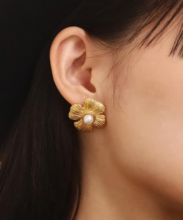 LHME ボリュームフラワーパールピアス/ゴールド/サージカルステンレス 金属アレルギー対応